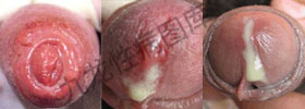 【重度】:脓疱使龟头有压迫感,瘙痒不断(剧想搔抓),脓疱触之即破(脓液表皮易破),红肿鲜红结痂状,散发的恶臭能轻易嗅到。