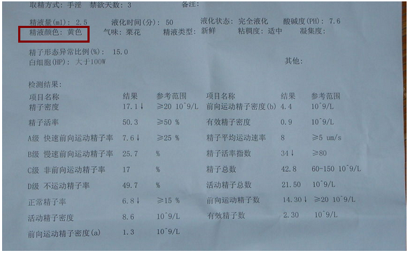 【实例】:精液发黄险失生育能力