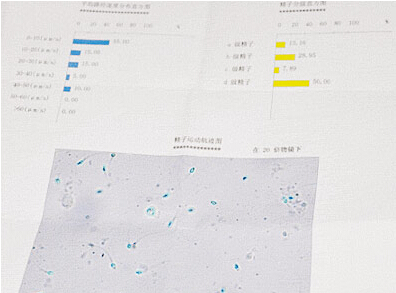 2 动态分析报告:报告可显示各种运动速度、精子活力等级分布图。