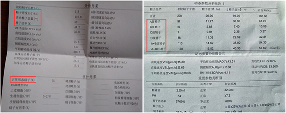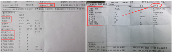 图说:以上均为精液检查报告单 ,检查项目不一,查看结果对照参考值(点击查看高清图片)