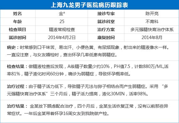 陈开亮医师表示:我院结合中西医全面综合治疗,拥有先进的“多元强精快育治疗体系”该疗法针对不同病因,进行相应的治疗。有效治疗精液不液化、少精、弱精、死精、无精、不射精等病症。据相关统计:临床以来,九龙医院成功康复了61578例精液患者,其中精液不液化患者12352例。治疗后他们表明没有不适症状,满意率高达98.4%。还有更多疑问,点击这里进入详细了解;想预约,点击这里免费预约《《《