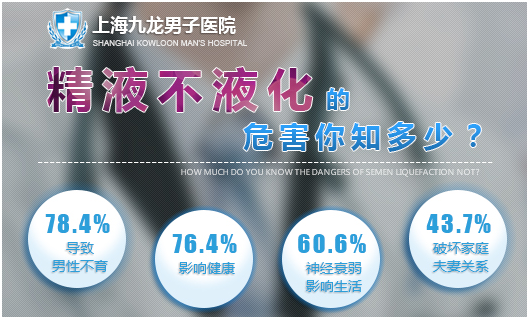 上海九龙男子医院 电话咨询【精液不液化】在正常精液射出后,在精囊凝固酶的作用下变为胶冻状,经15~30分钟在前列腺液化酶的作用下变为液体。如果离体精液在室温下(22~25℃)60分钟仍不液化或仍含有液化的凝集块,称为精液不液化症!自我检测,你的精液液化时间正常吗?不清楚是否正常点击此处>>>
