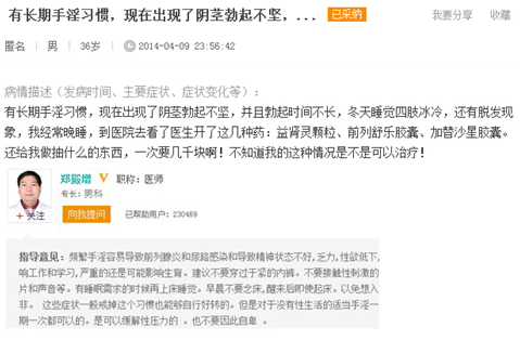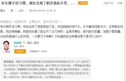 上海九龙男子医院 电话咨询【他的案例】一位网友姜先生网上咨询,长期手淫习惯,出现了阴茎勃起不坚,而且勃起时间不长等。医生告知易有早泄现象,具体情况需来院面诊。我也有类似情况,怎么办?