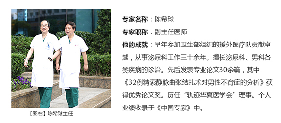 上海九龙男子医院陈希球:精索静脉曲张近年来发生率逐渐上涨,极大的威胁着男性健康,也是近年来导致男性不育的罪魁祸首之一。这些年,我花了很大的精力在对此进行临床研究并开展临床治疗,接诊患者中,很多都不了解精索静脉曲张与不育之间的关系,以致后期迟迟未生育或身体不适才到院检查,所以,男性朋友还是要尽早关注一下自己健康问题,也多了解精索与不育之间的关系。陈主任的话略有道理,请他来帮你诊断更为放心,点击进入>>>