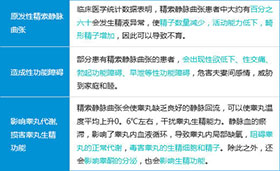 医师解说:精索静脉曲张是指精索里的静脉因回流受阻,而出现的盘曲扩张。临床上把精索静脉曲张分为原发性和继发性两种类型。