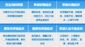 临床早泄分为轻度、中度、重度早泄;又分三大类偶见性、习惯性、老年性早泄,症状如下: